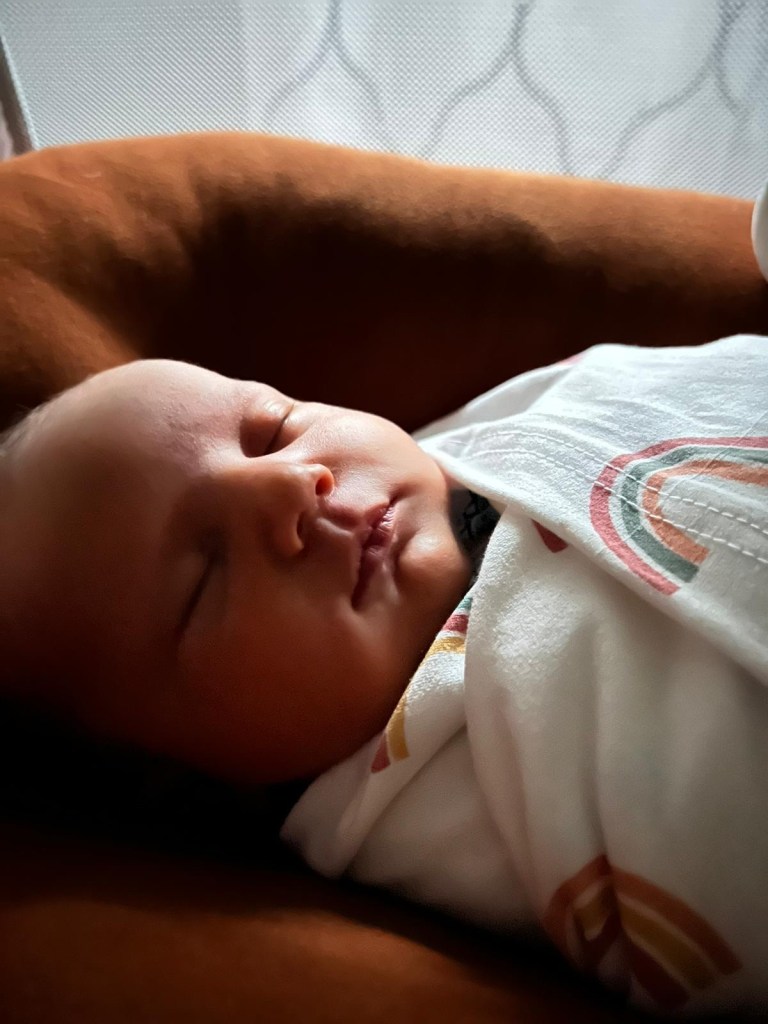 The key to that last sentence can be found in the “very tired” comment about my son-in-law. Why you may ask? Well, my daughter, his wife, had their sweet baby 10 days ago. They are figuring it all out beautifully, as much as parents can in those first couple of weeks, hence, they are tired. Yet, they still came to help us yesterday, and of course, in the middle of the night!! My daughter had a bit of a nap while here so I had the chance to hold my precious granddaughter again. What a joy!