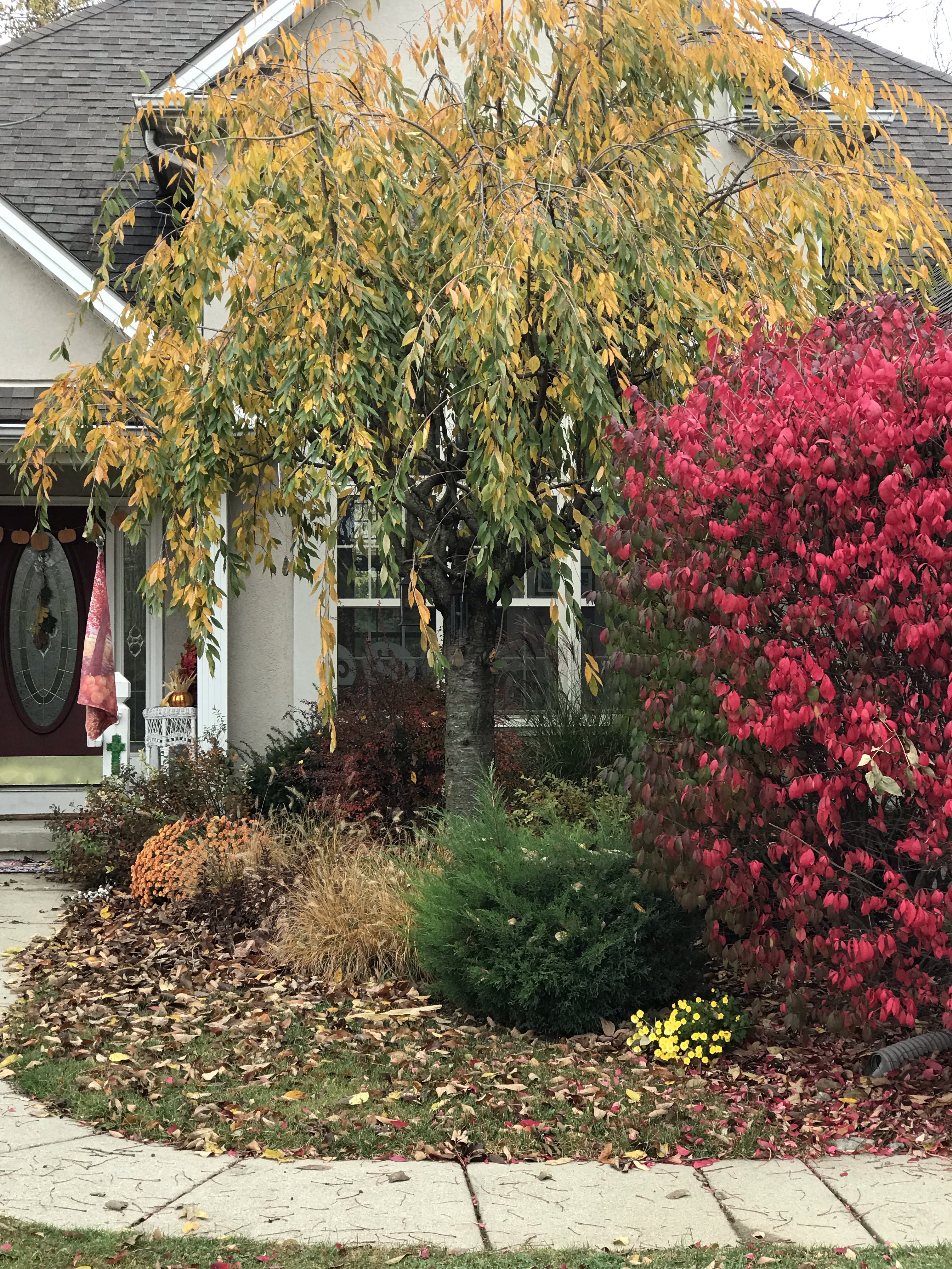 My husband and I love to decorate for Fall, and our yard just seems to cooperate right along with us in our decorating. Here are some pictures to try to express the beauty: